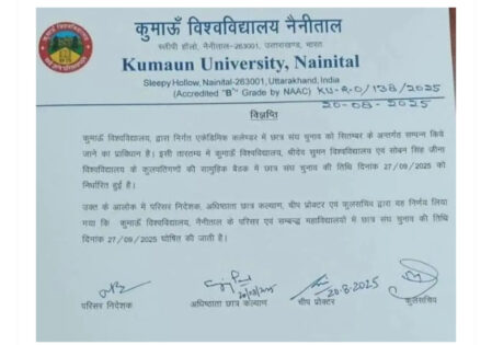 कुमाऊँ यूनिवर्सिटी में छात्र संघ चुनाव की बिगुल, 27 सितम्बर को छात्र शक्ति दिखाएगी दम August 21, 2025